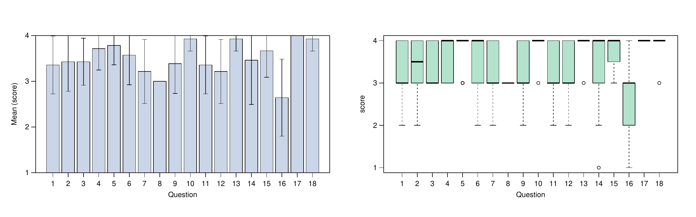 calculated by R. The evaluation form was compiled by 14 participants which rated